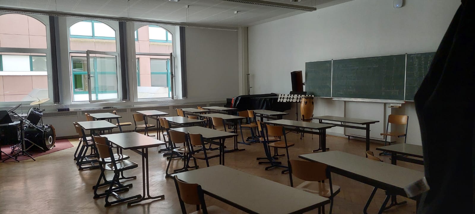 Zuerst kommt natürlich der Musik-Unterricht in den Musik-Räumen.