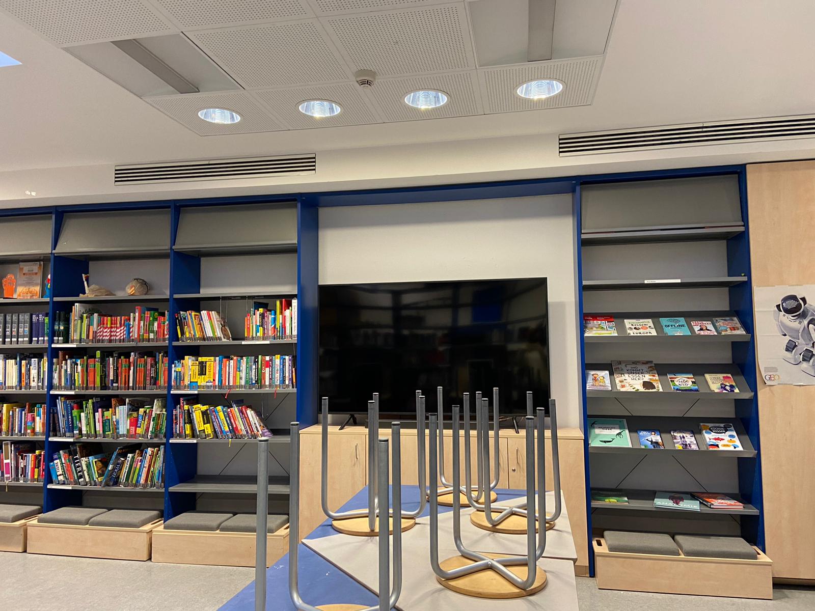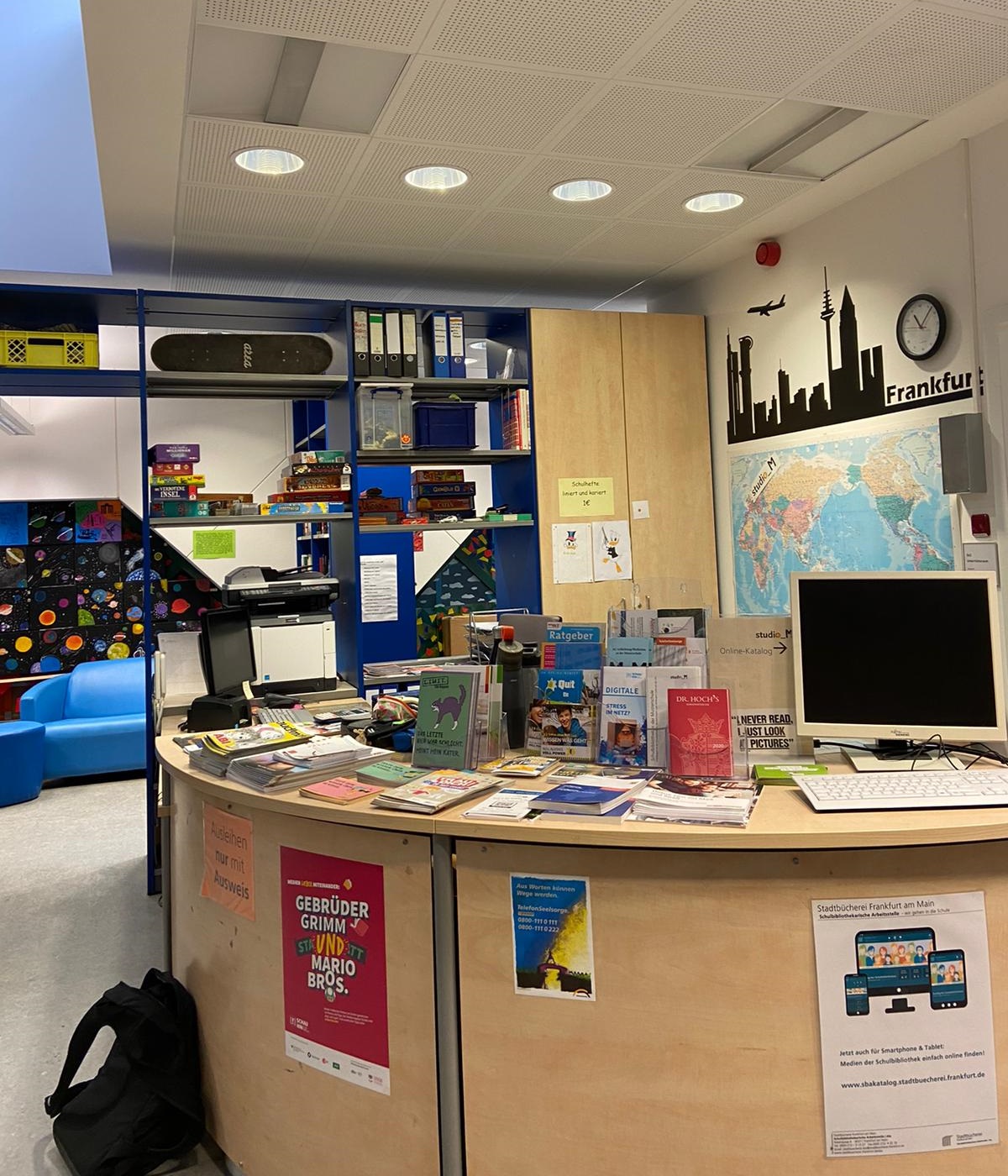 Das Studio M ist die Schulbibliothek der Musterschule. Sie wird von der Stadtbücherei Frankfurt am Main finanziell und organisatorisch unterstützt. Bisher gibt es ca. 6000 Bücher und andere Medien. Während der Mittagspause oder nach dem Unterricht können die Schüler Bücher, CDs und Spiele ausleihen oder auch dort benutzten. Außerdem kann man auch für Referate recherchieren, alleine oder in Lerngruppen. Es gibt zudem mehrere PCs mit Zugang zum Internet, ein Fernseher und eine Hörstation.