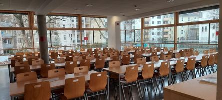 Es gibt jeden Tag die Auswahl zwischen 2 verschiedenen Menüs, der Nudelbar, Salat und einem Dessert. Der Preis für das Mittagessen beträgt 3 . Der Speiseplan für die ganze Woche ist auf der Webseite zu finden auf der man auch online schon vorbuchen kann. Besonders praktisch ist der Mensachip. Man bucht einen bestimmten Betrag auf den Chip und kann dann sein Mittagessen und Snacks für zwischendurch damit bezahlen.